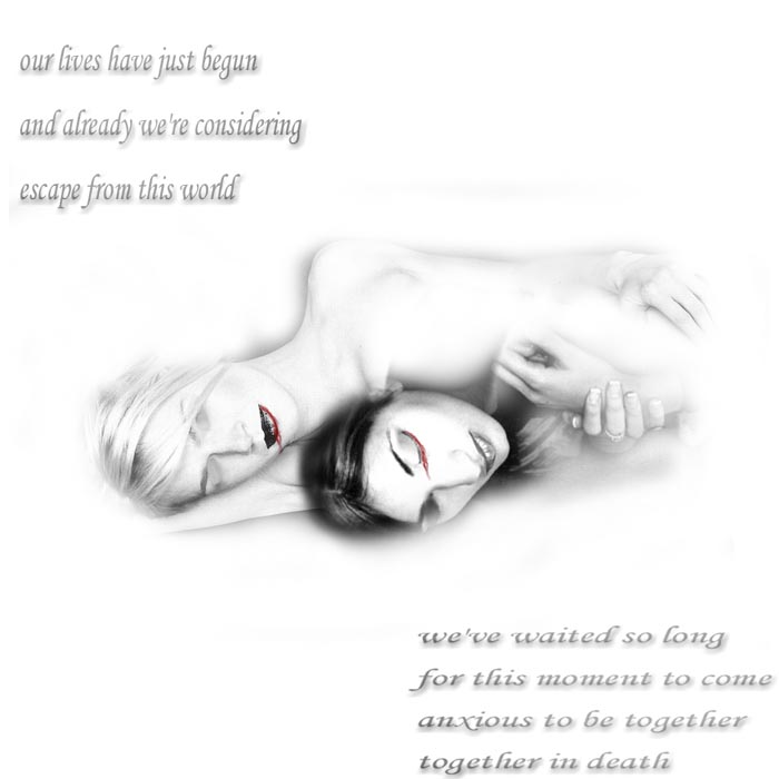 "modellene" hentet (uvitende) fra internett hadde i grunn åpne øyne, og tro meg: lukking av øyne i PS er ingen enkel sak! Jentene er også hentet fra to helt separate bilder i ymse størrelser, og klippet sammen.. (håper ingen av dem ser dette og saksøker meg for å ha fremstilt dem som lesber eller noe, derfor jeg lukka øya i grunn.. )